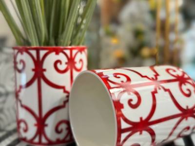 Jarrón rojo rejas porcelana H12D9,5 m