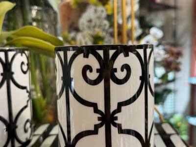 Jarrón negro rejas porcelana H12D9,5 cm
