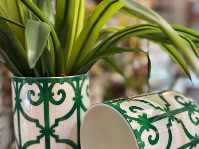 Jarrón verde rejas porcelana H12D9.5 cm